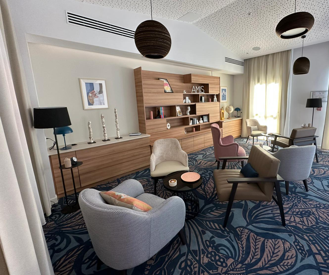 Le mobilier sur mesure joue un rôle essentiel dans cet aménagement. En effet, les lignes sont sobres, accueillantes et pensées pour le quotidien. Les finitions renforcent le caractère chaleureux des espaces communs. De plus, chaque meuble a été conçu pour un usage collectif, en tenant compte du confort des résidents et de la durabilité du mobilier.
