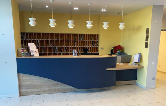 La banque d’accueil constitue un élément central de la résidence. Nous l’avons donc entièrement repensée.